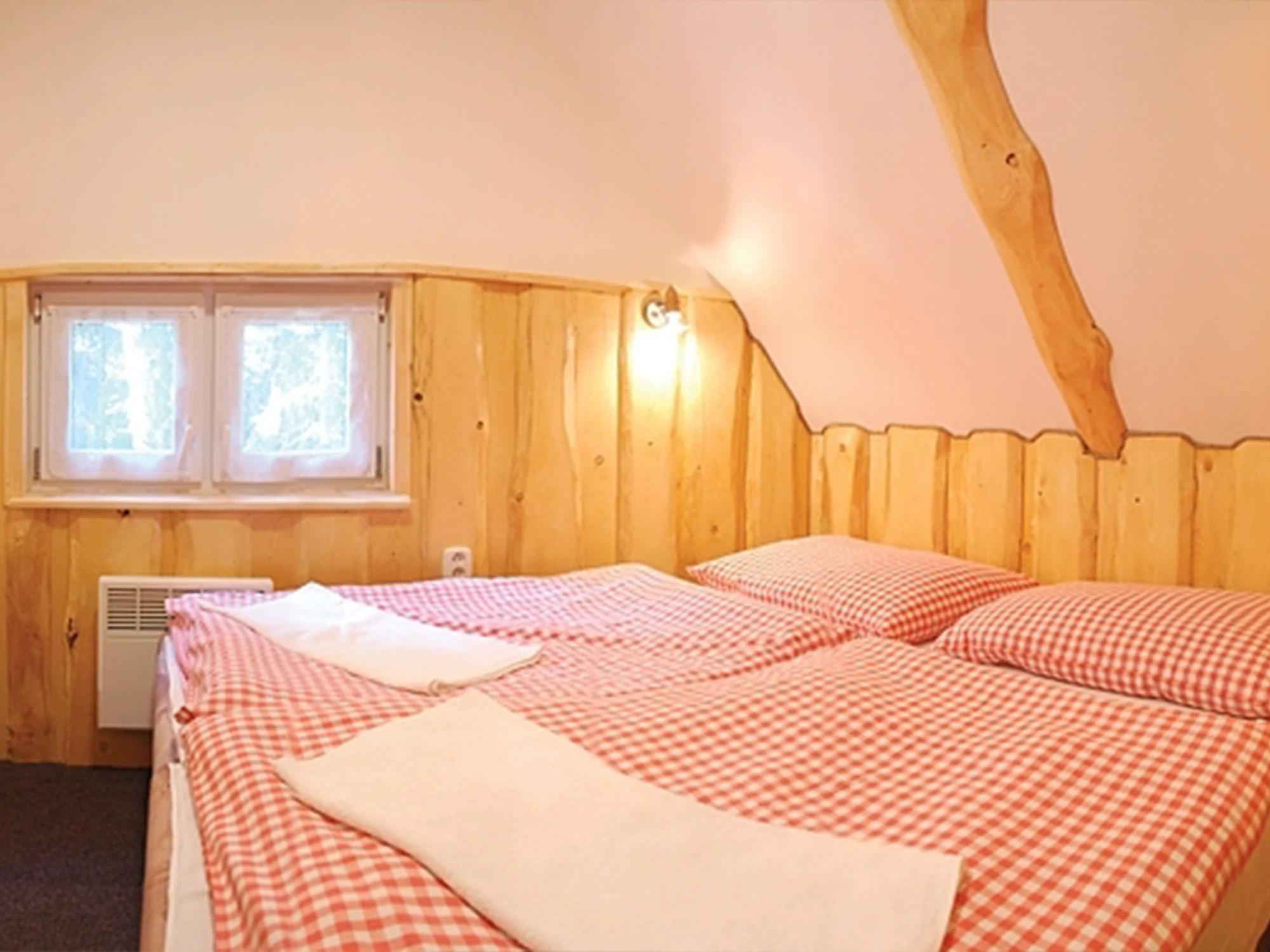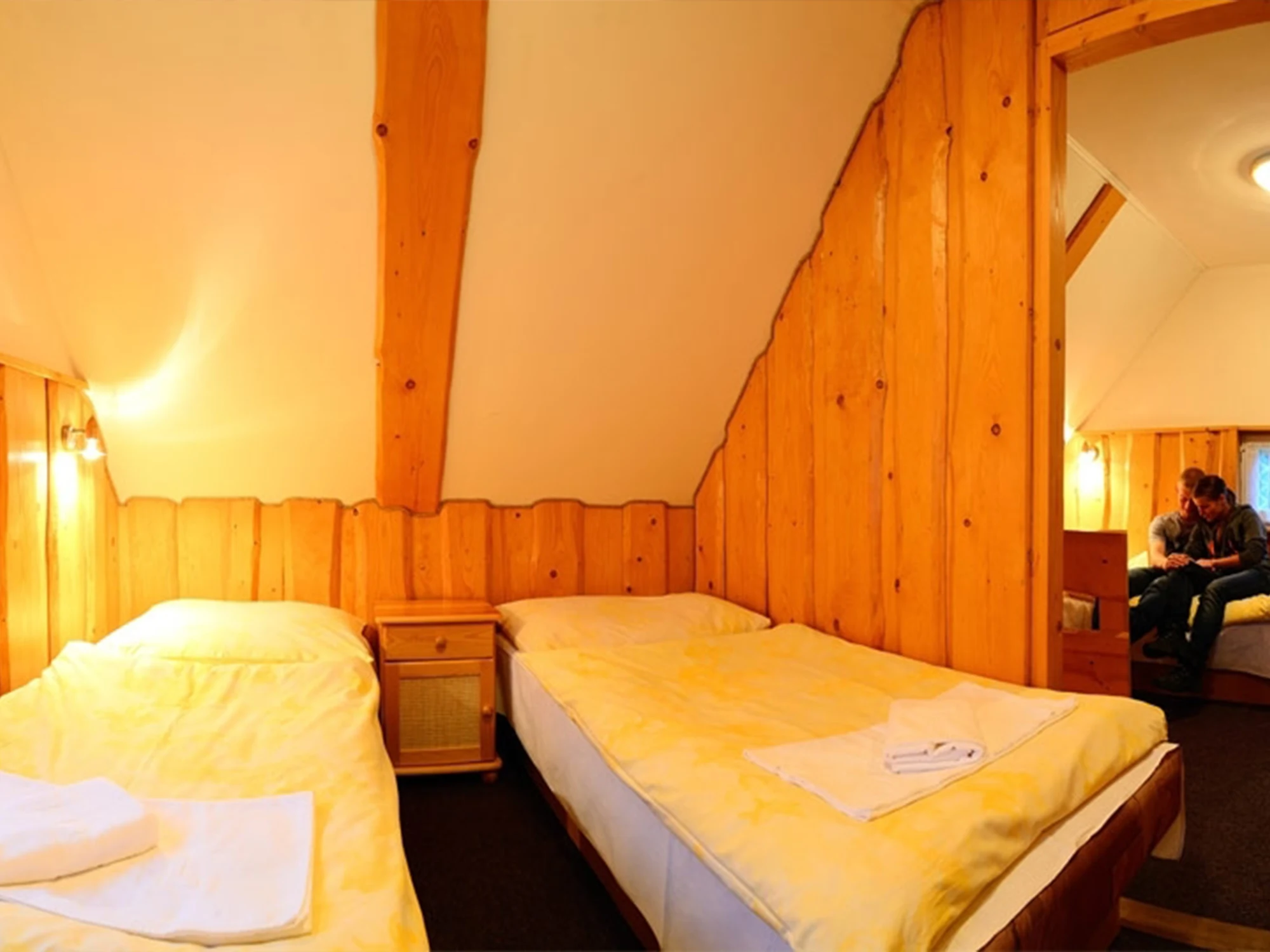 Tradičné chatové ubytovanie pre rodiny i skupiny nájdete v drevených zruboch pre 5 osôb (3+2), ktoré sú situované priamo v areáli hotela. Na prízemí zrubu sa nachádza predsieň, menšia spoločenská miestnosť so sedením, kúpeľňa so sprchou a toaleta. Na poschodí je dvojlôžková izba s prechodom do trojlôžkovej izby. Z bezpečnostných dôvodov sú všetky zruby nefajčiarske. Pri každom zrube je vytvorené ohnisko, kde si môžete pripraviť vlastnú opekačku či grilovačku v príjemnej atmosfére svojich blízkych.